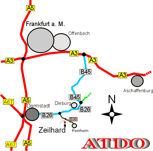 Ausfahrt: Nähe Dieburg -> Richtung: West (Links nach) -> Darmstadt